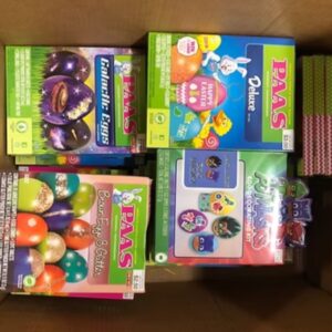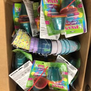 - Egg Decorating Kits: Large quantities of PAAS ColorCups, Galactic Eggs, Brown Eggs & Glitter, and PJ Masks decorating sets.